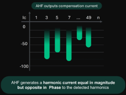 An Active Harmonic Filter dynamically analyses current waveform distortions and injects equal and opposite harmonic currents, ensuring a clean sinusoidal waveform.